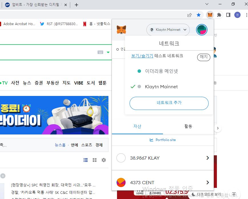 네트워크가 추가되었으면 상단 네트워크 버튼을 클릭하여 Klaytn Mainnet을 선택해주세요.
