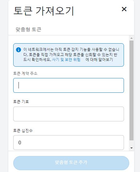 아래와 같이 토큰 주소를 입력하고 토큰을 가져오기를 눌러주세요.