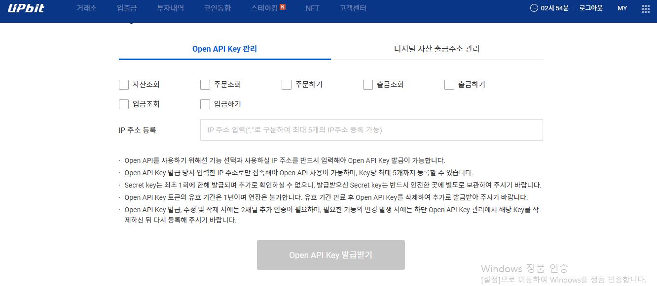 Open API 관리 버튼을 클릭하세요. (별도로 해킹 방지를 위해 2채널 인증을 걸어두시는 것을 권장드립니다.)