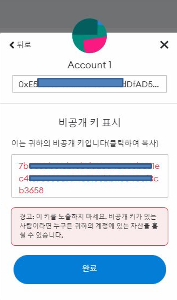 비공개 키 내보내기를 누르면 아래와 같이 비공개 키를 확인할 수 있습니다. 공개 키와 비공개 키를 복사해두세요.